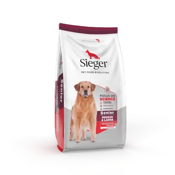 Sieger Senior Medium & Large Breeds +7 está especialmente diseñado con un balance óptimo de proteínas y grasas para mantener el peso corporal ideal, reduciendo el desgaste fisiológico normal sobre las articulaciones y los huesos.
